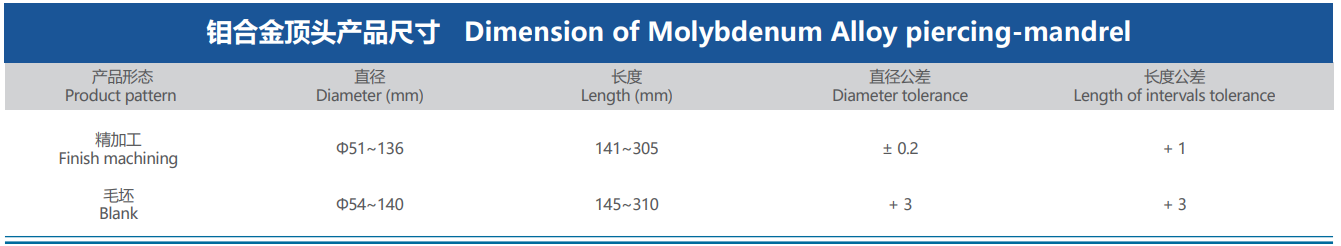 In the seamless steel pipe industry, all countries in the world basically use the plug hot piercing forming technology to prepare stainless steel pipes. The selection of molybdenum alloy plugs with excellent operating performance is an important factor to ensure the quality of seamless stainless steel pipes.