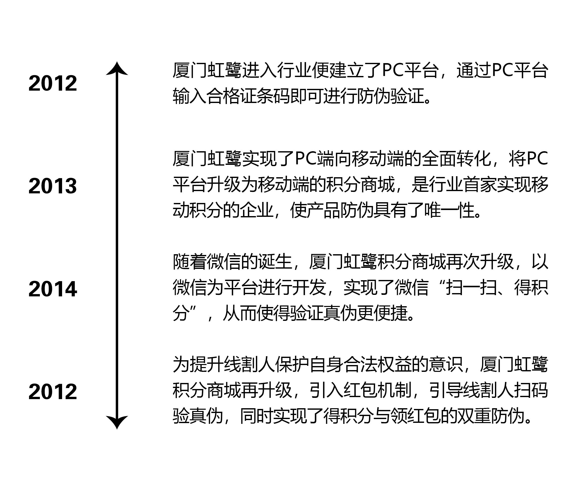 一直以來(lái),廈門虹鷺十分注重產(chǎn)品的防偽,以此保障消費(fèi)者的合法權(quán)益,并緊跟時(shí)代的步伐,不斷的創(chuàng)新、升級(jí)。